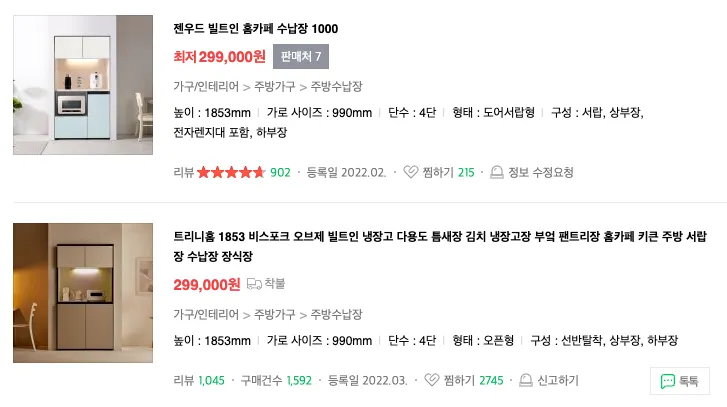 만약 위와 같이 일체형 제품이 아니라, 분리형 제품을 사용하신다면 하부장도 같이 맞추셔야 합니다.